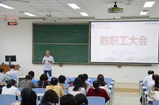 2021年6月24日,欧冠直播官网召开2020-2021-2学期期末教职工大会,全体教职工参加了会议,会议由学院党委副书记邹维忠主持。