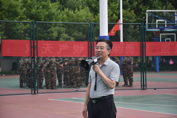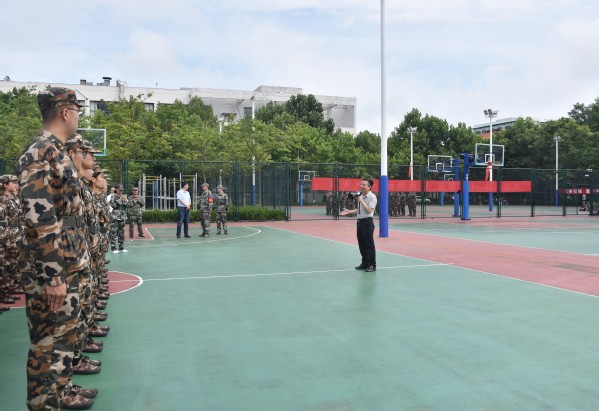 张永宁书记指出了本次军训与以往的不同之处,以个人经历激励学生,提出“锤炼意志”、“个性融入共性,个人融入集体”、“挑战自我,突破极限”等要求,并表达了对军训学生的美好祝愿。