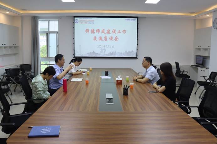 2021年7月6日,党委教师工作部副部长李贞刚、师德师风建设办公室主任张钊一行赴欧冠直播官网调研师德师风建设工作。学院党委书记张永宁、副院长孙大满、学生工作办公室主任梅琳、学院办公室副主任解忠刚、党委秘书王亚男参加座谈。