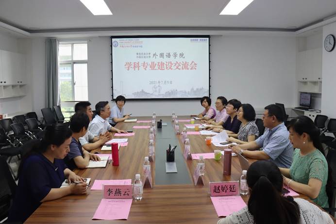 2021年7月9日,青岛农业大学欧冠直播官网院长纪卫宁、副院长高秀雪、专业负责人徐玉凤以及梁钢老师一行四人来欧冠专题调研翻译硕士(MTI)学科建设和一流本科专业建设。毛浩然院长、张炜书记、王新博副院长、孙大满副院长、韩淑芹副院长、郭月琴副院长及学院相关系部负责人参加座谈。