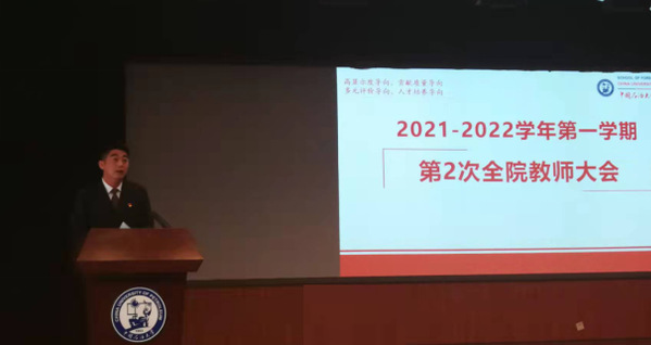 2021年10月28日,欧冠直播官网在逸夫楼礼堂召开全院教师大会,会议由学院党委邹维忠副书记主持。校党委2021年第二巡察组杨武成副组长、巡察专员张庆强、姜飞和学院全体教职工参加了本次会议。