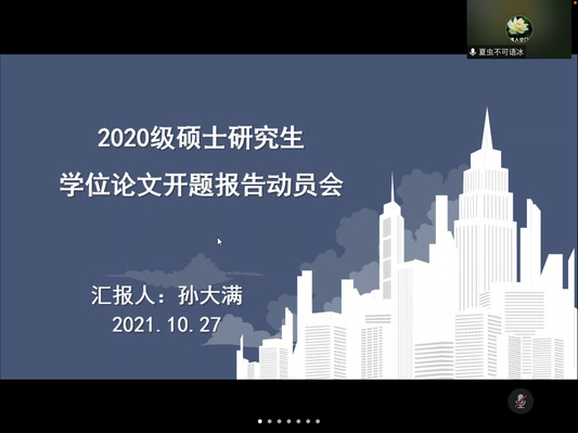 为确保2020级硕士研究生学位论文开题工作的顺利开展,2021年10月27日,欧冠直播官网在线召开了2020级硕士研究生学位论文开题动员会。院长毛浩然教授、副院长孙大满教授、研究生教育办公室主任徐小雁副教授、全体2020级硕士生导师以及2020级硕士研究生参与了本次会议,会议由孙大满副院长主持。