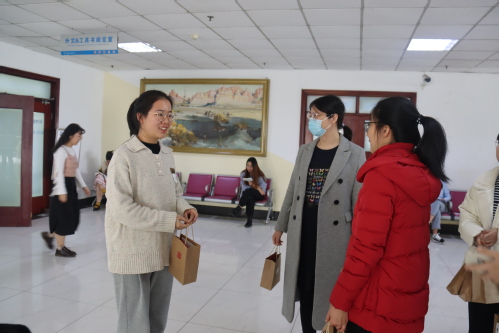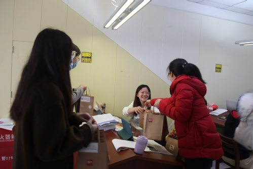 活动中,老师们探访考研教室与图书馆自习室,将学院精心准备的礼袋送到考研学生手中,礼袋里有孔庙祈福文具套装、云片糕、暖宝宝贴、牛奶等,包含了老师们满满的期望与祝福:考研在即,文具是必备品,孔庙祈福,预祝考研同学一战成硕;云片糕,寓意考研同学能够“糕”中状元;暖宝宝贴,希望能给考研同学带来温暖,考研路上并不孤单。同学们看到老师们亲手送来的礼物感到十分惊喜。老师们鼓励考研学子在复习的关键阶段,要坚定必胜信心,保持良好心态,科学作息,规律饮食。