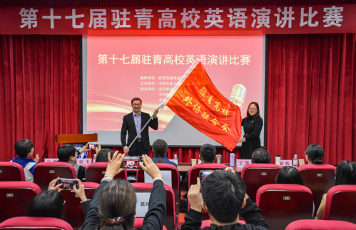 最后,举行了驻青高校英语演讲比赛主办单位交接仪式。山东科技大学欧冠直播官网李允副院长从张建科副院长手中接过了比赛旗帜。李允副院长表示将全力办好下一届驻青高校英语演讲比赛,展示山东科技大学的开放与热情,欢迎各个驻青高校的到来,期待大家的下一次相聚。
