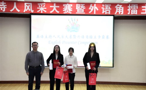 石国卿副书记为英语主持人风采大赛决赛二等奖获得者颁发证书及奖品