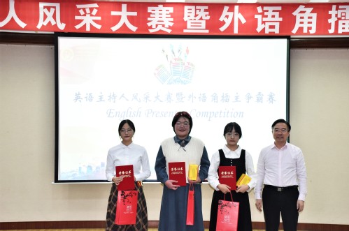 张炜书记为英语主持人风采大赛决赛一等奖获得者颁发证书及奖品