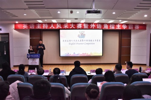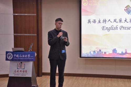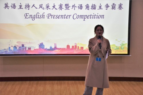 为提高学生的英语表达能力,营造良好的英语学习氛围,12月19日晚,英语主持人风采大赛决赛暨外语角擂主争霸赛在西环301举办。欧冠直播官网院长毛浩然教授、党委书记张炜,校团委副书记石国卿,石油工程学院外聘教授盖华文,档案馆张大宇,英语语言文学系王新博教授、付晓副教授、刘媛媛副教授,俄语语言文学系副主任林超老师,通用英语系副教授王芳,学术英语系副教授彭翠平、研究生外语教学部主任郑琳出席比赛并担任评委。