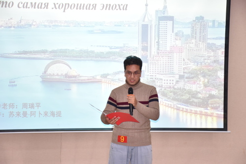 经过本学期“石大外语角”激烈的擂台赛,共产生15位擂主进入本次外语角擂主争霸赛。本次比赛以“这是最好的时代”为主题,选手们依次进行即兴演讲,最终英语1902范玉婷和俄语2102刘泽林脱颖而出,分别成为本学期外语角英语和小语种的最终擂主。俄语2102宋媛媛获得风采奖,吕皓月、窦心琪、曹佳钰、李林湘昱、李光哲、苏来曼·阿卜来海提、周杨皓、高晓雨、许洪鑫、韦易迅、张霜媛和孙聪瀚获得纪念奖。