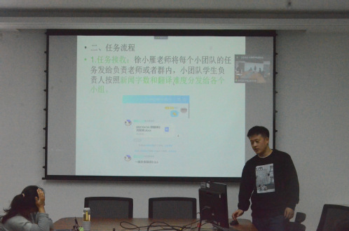 徐小雁老师具体介绍了新闻网站翻译工作的各个环节,提醒同学们要把此次翻译活动当成重要的实践机会,注意对比翻译初稿与修改稿、终稿的差距,弥补不足,进而积累实践经验,提高实践能力。