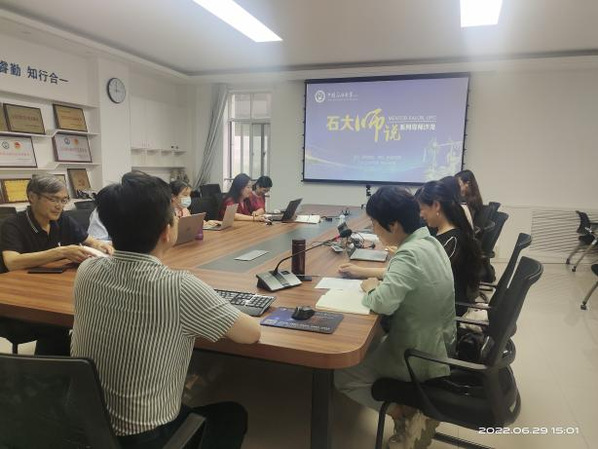 2022年6月29日下午,由研究生院主办、欧冠直播官网承办的 “石大师说”系列导师沙龙活动在文理楼346会议室举行。活动由欧冠直播官网副院长孙大满教授主持,欧冠直播官网院长毛浩然教授主讲,线上线下同步进行,学院全体研究生导师、任课教师及研究生150余人参加了本次活动。