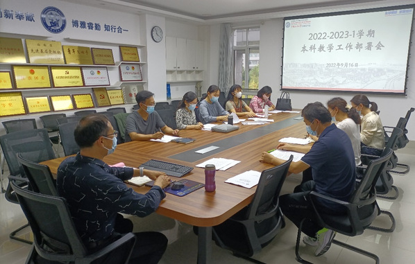 2022年9月16日下午,欧冠直播官网在文理楼346召开新学期本科教学工作部署会。会议由本科教育教学分管副院长张建科主持,各教学系部主任、教学副主任、实践教学服务中心主任、本科教学秘书参加会议。
