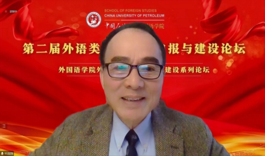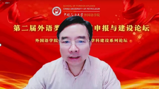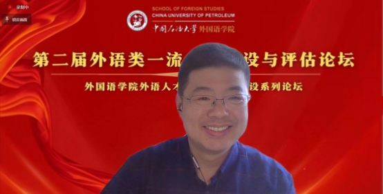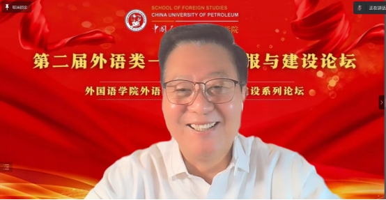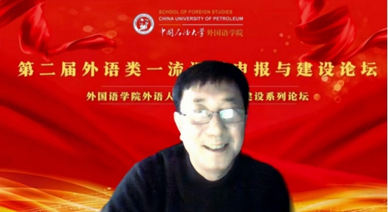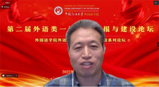 为进一步推动新文科背景下外语类一流课程申报与建设,提高外语人才培养质量,由中国石油大学(华东)欧冠直播官网主办的“第二届外语类一流课程申报与建设论坛”于 2022年11月19日上午在云端成功举行。本次论坛特邀天津外国语大学王铭玉教授、浙江大学叶高翔教授、哈尔滨工业大学刘克东教授、湖南大学刘正光教授、华侨大学苏慰凰副教授、战略志愿部队信息工程大学陈春华教授、东南大学李霄翔教授七位知名专家做主旨发言,其中6位专家为各学科教指委委员。论坛由中国石油大学(华东)欧冠直播官网院长毛浩然教授、范靓副教授、尹衍桐副教授、王新博教授主持,来自全国37所院校的210余名专家学者在线参加了本次论坛。