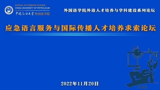2022年11月20日下午,由中国石油大学(华东)欧冠直播官网主办的“应急语言服务与国际人才培养求索论坛”在线顺利举行。本次论坛特邀香港理工大学博士生导师冯德正副教授、外交学院副校长孙吉胜教授、华中师范大学欧冠直播官网院长罗良功教授、山东大学欧冠直播官网副院长李建刚教授、北京外国语大学博士生导师刘红艳教授、福州大学博士生导师陈小慰教授、海南大学欧冠直播官网院长金山教授作大会主旨报告。来自全国30多所高校和科研院所的300余名专家学者和研究生在线参加论坛。论坛由中国石油大学(华东)韩淑芹教授、韩辉副教授、郭月琴教授和赵春霞副教授主持。