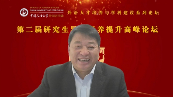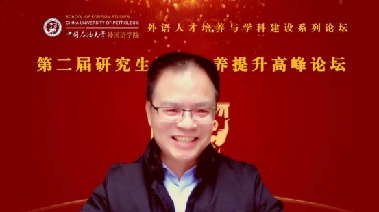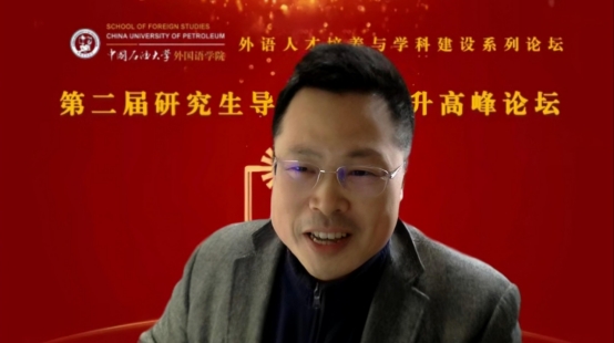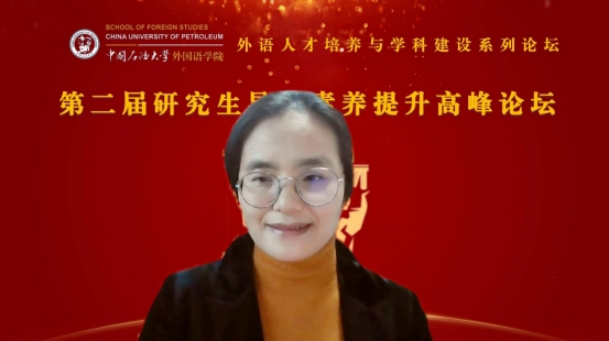 山东省专业学位研究生教育指导委员会委员、青岛大学欧冠直播官网院长卞建华教授以“外语学科导师科研能力提升路径——兼谈人文社科项目申报”为题作主旨报告。首先,她针对外语学科面临的机遇与挑战,指出外语学科要与时俱进,积极回应国家需求,达到新文科建设理念的要求。其次,在高校外语学科导师素质能力提升路径方面,她强调了五个“不怕”和五个“多一点”,希望研究生导师对学生一视同仁,始终保持求学刻苦精神、学术求索精神和积极追求精神。