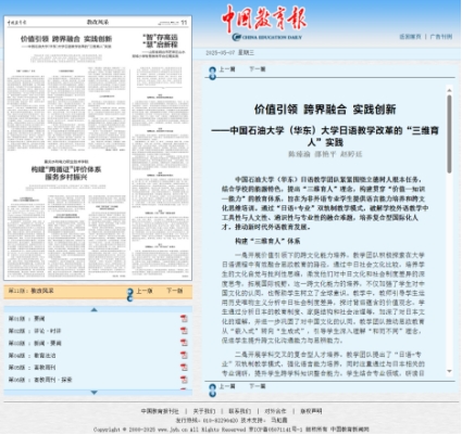 6. 《中国教育报》:价值引领跨界融合实践创新——中国石油大学(华东)大学日语教学改革的“三维育人”实践