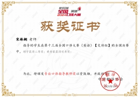 26 | 宋姝娴. 指导2名学生获第十三届全国口译大赛(英语),全国决赛二等奖和优秀奖 |