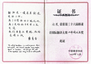 20 | 赵婷廷. 指导1名学生获第三十六届韩素音国际翻译大赛,优秀奖 |