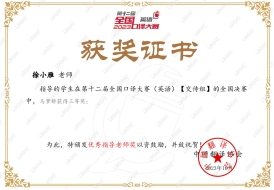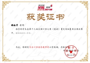 24 | 徐小雁. 指导1名学生获第十二届全国口译大赛(英语)【交传组】全国决赛,国家级三等奖 |