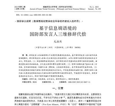 6 | 基于信息熵语境的国防部发言人三维修辞代偿(CSSCI) |